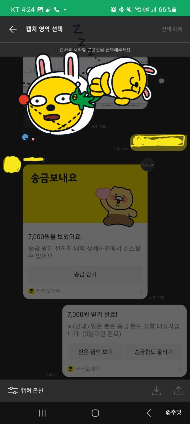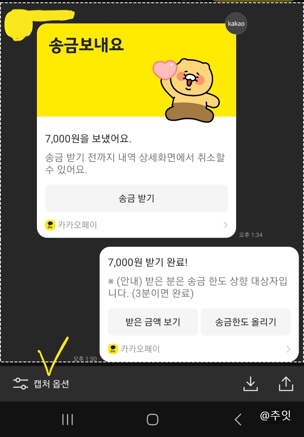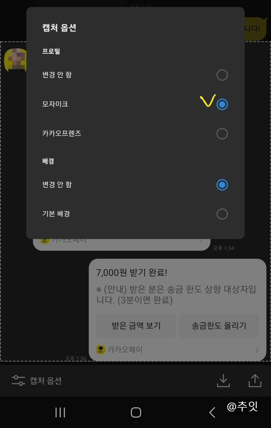 카카오톡 캡쳐 방법 (모자이크 및 캐릭터)