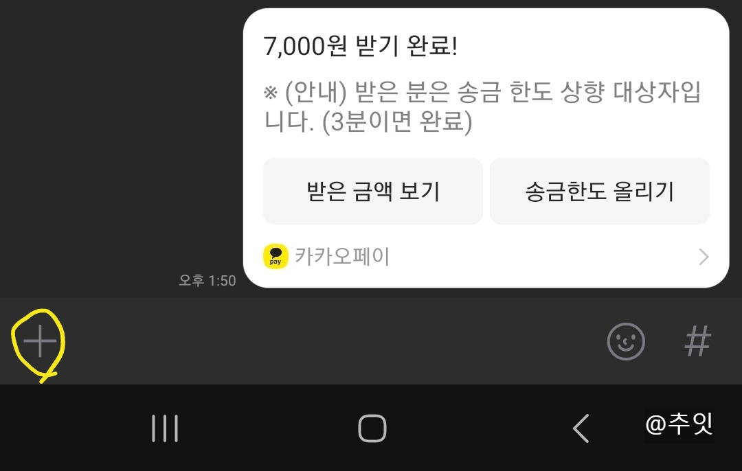 1. 캡쳐 하려는 톡방에서 + 표시 누르기
